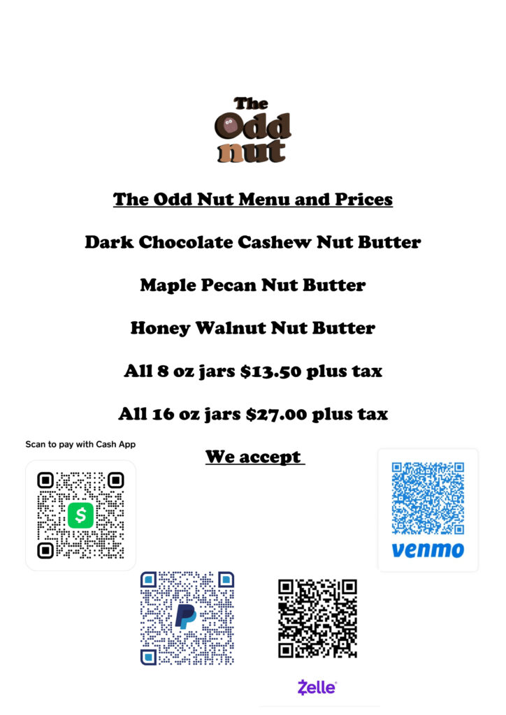 Customers who saw The Odd Nut featured on WJZ’s “Where’s Marty” segment or otherwise and are interested in placing an order please leave a description of the flavor and size in the comments below or email theoddnut2025@gmail.com and either you can purchase jars at the farmers markets or we will arrange to deliver your order to you